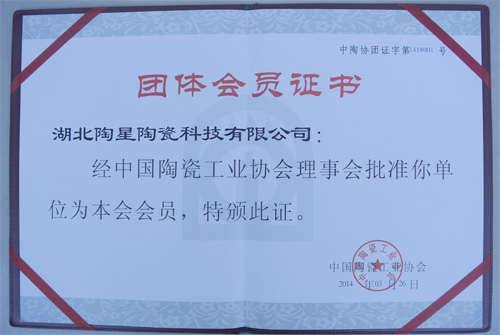 近日,從中國陶瓷工業(yè)協(xié)會理事會傳來喜訊,湖北陶星陶瓷公司正式被批準為中國陶瓷工業(yè)協(xié)會團體會員單位,并頒發(fā)了會員證書。