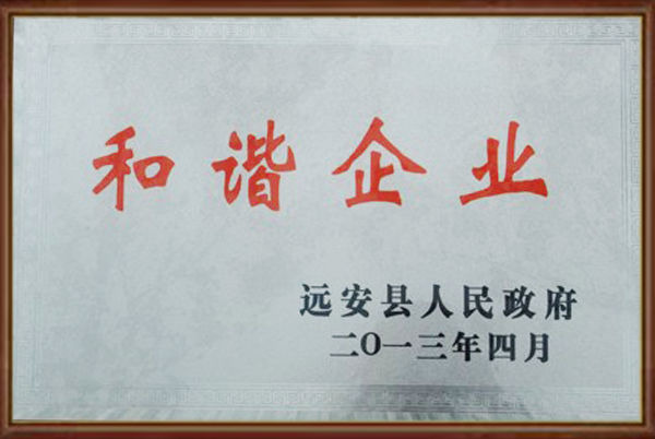 2013年4月獲評遠(yuǎn)安縣和諧企業(yè)稱號