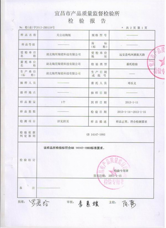 關(guān)公坊陶瓶質(zhì)檢報(bào)告