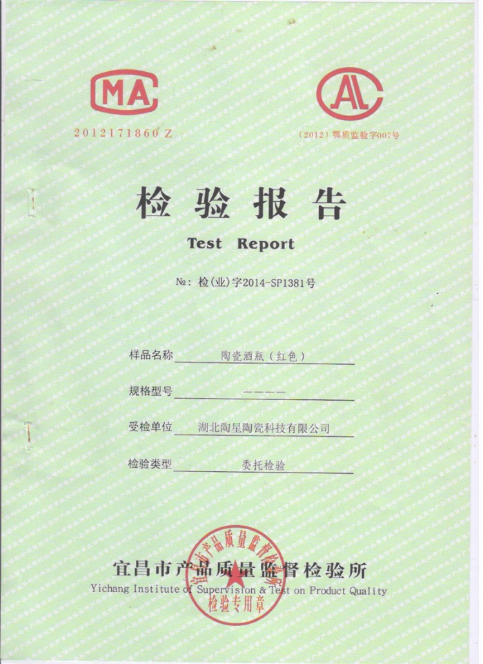 陶瓷酒瓶白色質(zhì)檢報告