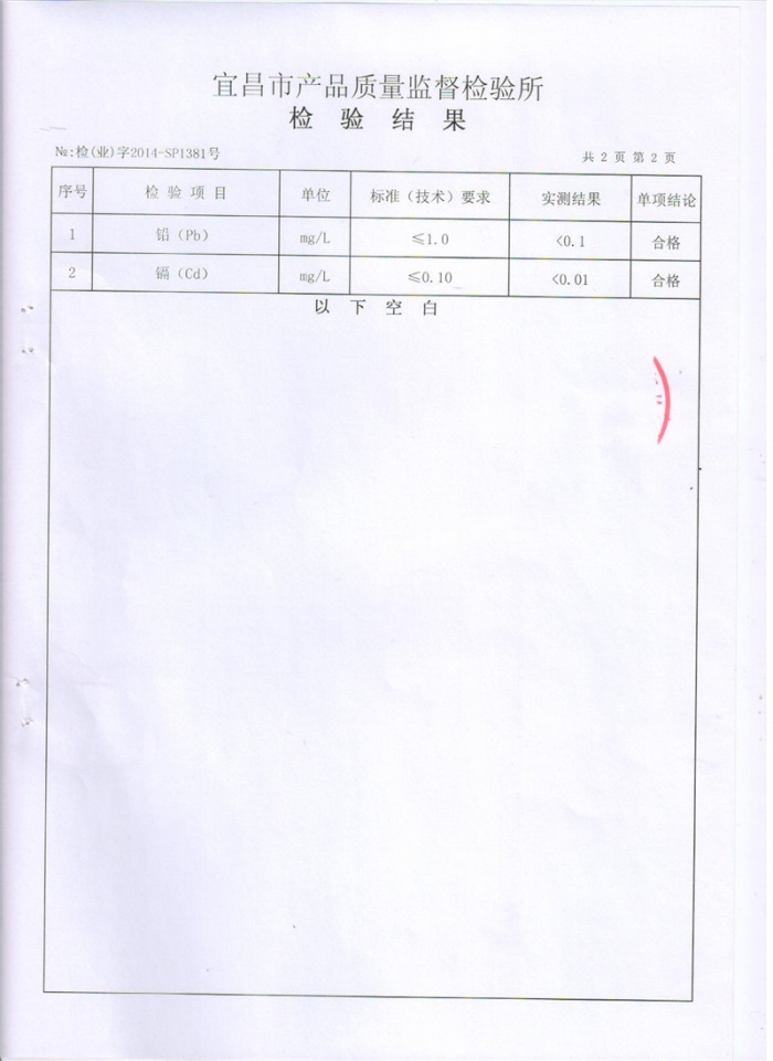 下一篇:陶瓷酒瓶黃色質(zhì)檢報告