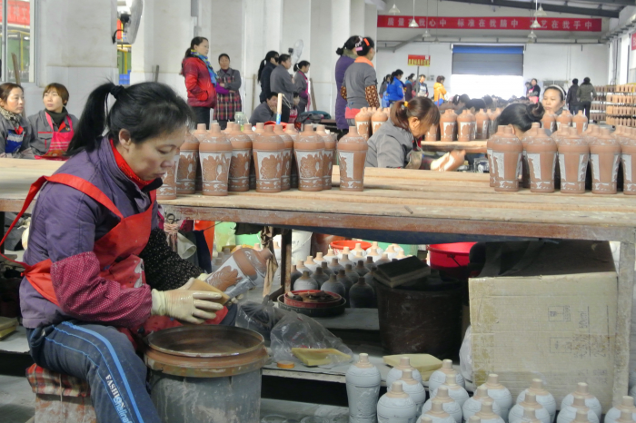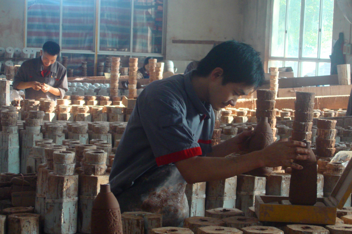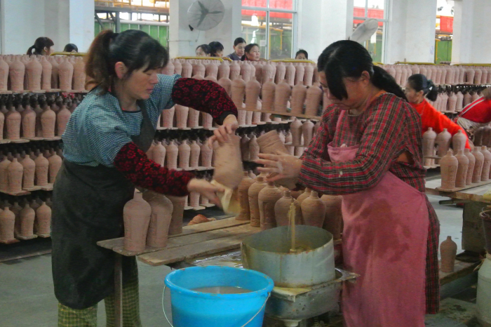 上內(nèi)釉操作現(xiàn)場