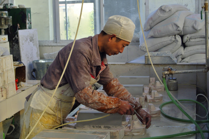 此次勞動競賽共分9個項目進行,個人競賽項目為模型制作、手工注漿、半成品修洗、上色、上內(nèi)釉、貼花、瓶蓋制作等工序;團體競賽項目為修洗流水線作業(yè)、自動注漿機操作。各項競賽均由裁判人員按照各工序產(chǎn)品的質(zhì)量標(biāo)準(zhǔn)進行判定并按所產(chǎn)出的正品數(shù)量記錄成績。