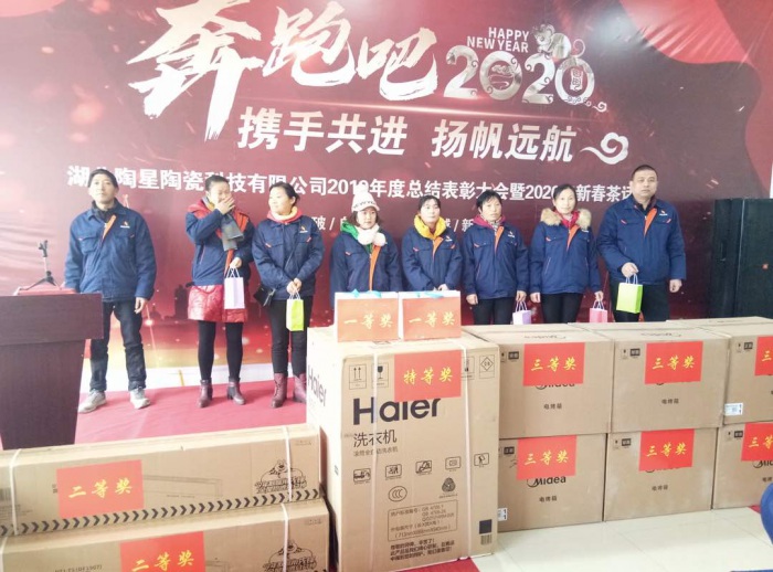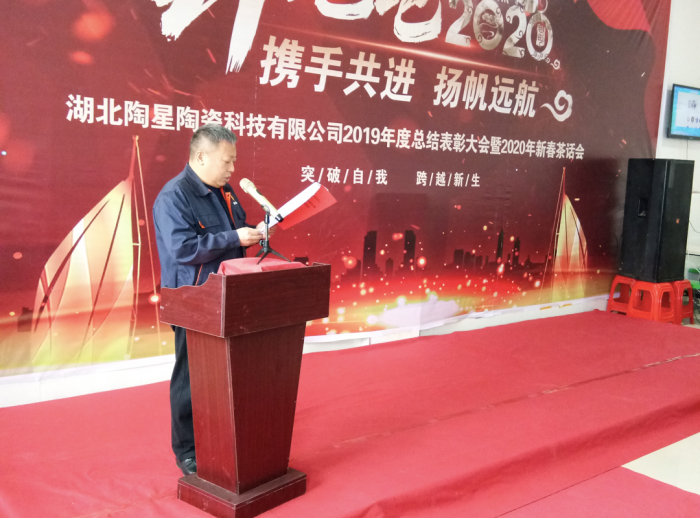 1月18日,陶星陶瓷公司2019年度總結(jié)表彰大會(huì)暨新春茶話會(huì)在公司職工食堂隆重舉行,公司全體干職員工共計(jì)450余人參加會(huì)議,會(huì)議由辦公室主任金宏偉主持。