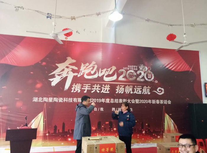 最后,公司總經(jīng)理杜修全同志為新年致辭,他指出:2019年公司雖困難重重,但陶星人憑著一股不服輸、不認(rèn)輸?shù)母蓜牛R心協(xié)力,揮灑汗水,在市場經(jīng)濟(jì)整體下滑的情況下,公司內(nèi)銷和外銷仍持增長態(tài)勢(shì),只要上下齊心,報(bào)團(tuán)取暖,度過公司低迷期,將會(huì)迎來新一輪的大發(fā)展。同時(shí)向辛勤奮斗在各個(gè)工作崗位上的陶星人,以及在背后默默支持的家屬致以誠摯的感謝。