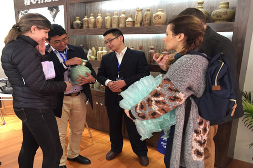 糖酒會(huì)現(xiàn)場(chǎng),來自全國各地的酒類經(jīng)銷商和客戶仔細(xì)觀摩樣品,詢問產(chǎn)品特性和制作工藝,一致表達(dá)了對(duì)陶星陶瓷高超工藝的贊嘆。幾位俄羅斯友人對(duì)兼具中國特色文化內(nèi)涵和精湛青瓷工藝的酒壇愛不釋手,紛紛表示要購買收藏。