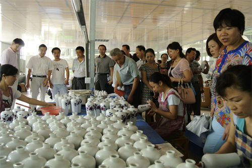 在陶星陶瓷公司總經(jīng)理杜修全的陪同下,代表團一行參觀了公司高檔酒瓶生產(chǎn)車間、動力車間、模型車間等,深入了解了陶瓷酒瓶生產(chǎn)的全過程。代表們紛紛稱贊,陶星陶瓷公司規(guī)模大、設(shè)備先進,生產(chǎn)出陶瓷產(chǎn)品外觀精美、獨具特色,且具有較高的收藏價值,讓人愛不釋手。